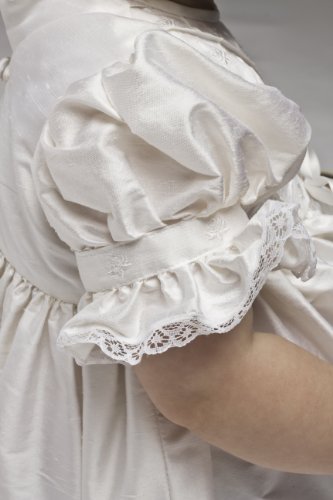 Poppet Heirloom 100% Silk Dupioni Christening Gown with Headband and Booties Features